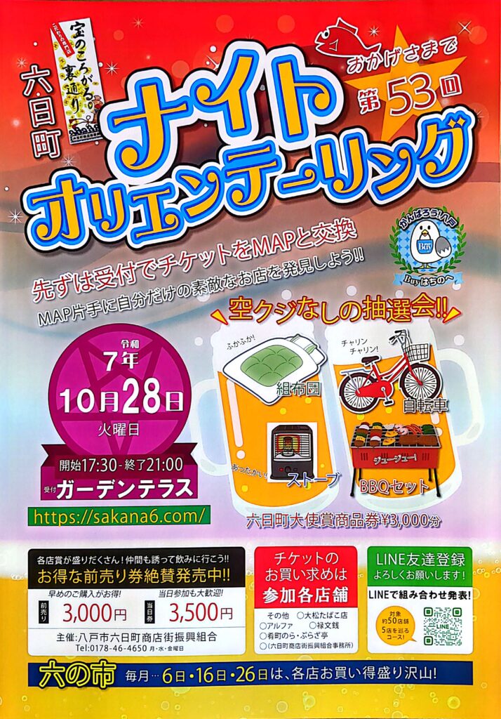 10月28日(火)午後5時30分六日町オリエンテーリングを開催します!